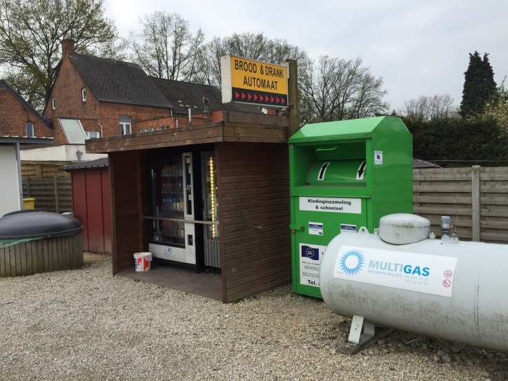 Het is goed wandelweer en het lukt me ook de geplande route goed te volgen. De lente is aanwezig, ik maak lange afstanden in de bossen. Onderweg zie ik een heel handige broodautomaat, die ik eigenlijk in elk dorp wel tegenkom. En zo’n gastankje maakt het alleen maar spannender.