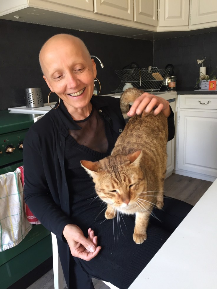 Even later zitten Maria en ik aan de keukentafel met een heerlijke beker thee. De vrouw heeft kanker. Onlangs is ze bestraald en heeft ze al het haar verloren, dat juist weer begint aan te groeien; ze laat de donshaartjes zien. Binnenkort wil ze weer terug werken. Alles weer ‘gewoon’. Ik ken dat, zeg ik. Mijn vrouw Karin heeft hetzelfde meegemaakt. De kanker van deze vrouw openbaarde zich nadat de crisis in haar huwelijk begon, toen haar man besloot zich aan te sluiten bij een secte in België. Ze had hard moeten vechten voor haar kinderen en spaargeld. Nu is de ellende voorbij en hoopt ze ook dat ze met het werk haar gewone leven weer kan oppakken. Ze heeft zo’n lieve uitstraling en de poezen zijn dol op haar. Op mij trouwens ook, dat beest wil voortdurend op mijn schoot.