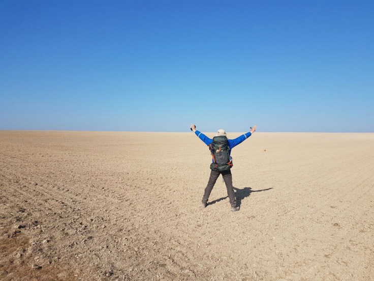 Uitgestrekte vlaktes voor landbouw, geen dorpen, amper bomen. Ook geen mogelijkheden om de symbolen voor de camino-route goed aan te geven. Grote witte vlaktes.