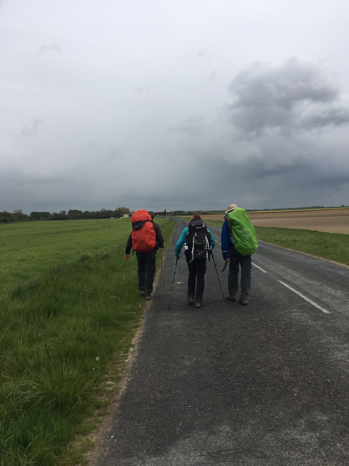 Dan komen we in Anglure waar de dames slapen, we gaan een warme koffie drinken. Na afscheid gaan Maurice en ik verder (ca. 4 km) naar onze bestemming in Bagneux. Daar worden we zeer enthousiast ontvangen door meneer en mevrouw van de gîte. Maria (zie eerder verslag) had dit geadviseerd, zij was die ochtend hier vertrokken. Lekkere avondmaaltijd, welkomstdrankje (eau de vie van druiven), alle kleren gewassen en een lange avond gepraat over van alles en nog wat. Gevoel van thuis bij familie. Nog steeds alles in orde, goeie voeten, spieren, enkels, knieën en ook ademorganen best goed. Morgen verder.
