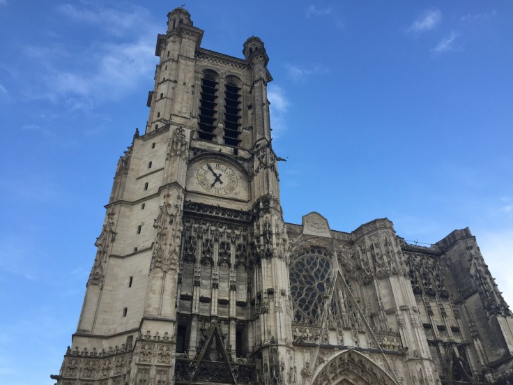 De kathedraal van Troyes wordt gereviseerd en staat op straatniveau achter hekken, ook het plein wordt opnieuw aangelegd. Het is een zeer indrukwekkende grote kerk, net als in Reims halen we ook hier een mooie stempel als herinnering.