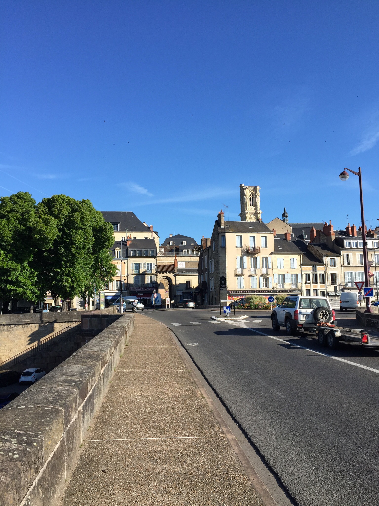 Vroeg ontbeten, snel vertrokken uit ‘Espace Sainte Bernadette’ en ik kom terecht in de ochtenddrukte van Nevers. De monumentale brug ga ik over en dan langs de Loire verder naar het buitengebied. Het is prachtig weer en dat blijft de hele dag.