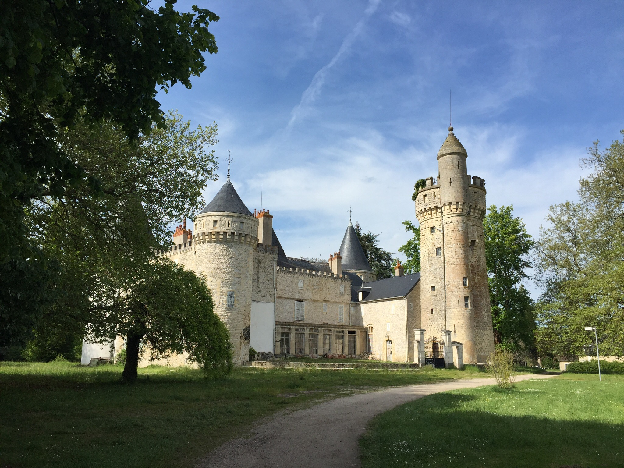 Het is een enorm gebouw waaraan van buiten en van binnen nog veel moet gebeuren. De eigenaars hebben het twintig jaar geleden gekocht met de bedoeling om in het kasteel een b&b te beginnnen. Het lijkt een molensteenproject te worden, waar je levenslang aan vast zit zonder eindsultaat. Op enige afstand staat een bijgebouwtje met drie slaapunits: een slaapkamertje, een douche/wc, een keukentje, tv, koelkast en wat eten met een klein flesje rode wijn. Er zou nog een stel komen, vertelde de kasteeldame.