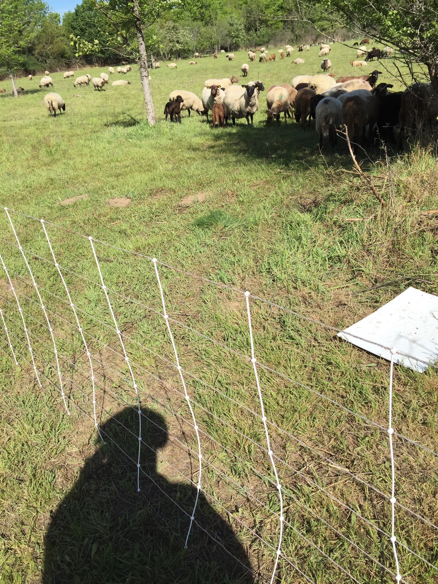 Een lange wandeling door bossen en weilanden langs de rivier, kuddes schapen op de open plaatsen achter draad. Even verderop stopt een bestelautootje met de herderin die op weg is naar haar schapen. Hoe romantisch is dat. Gezellig gekletst.
