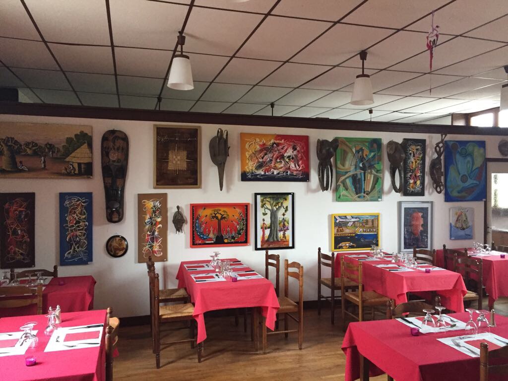 Even later kom ik in het dorp Les Billanges en vind meteen mijn pauzecafé voor een koffie. Bij de voordeur van dit café-restaurant is al aangekondigd, dat binnen Afrikaanse kunst wordt geëxposeerd en verkocht. Ik ben benieuwd. De kroeg is leeg, tenminste wat mensen betreft, want het staat en hangt vol met Afrikaanse beelden, schilderijen, sierraden, etc. De barkeeper komt tevoorschijn en ik zie een mooie donkere Afrikaan met brede glimlach. Na mijn directe vraag uit welk land hij (en alle kunst) komt, is het antwoord: Senegal. Daar heb ik een aantal maanden met veel plezier gewerkt langs de Senegal-rivier in het noorden aan bodemonderzoek voor landbouw. Hij komt uit het zuiden, de Casamance, maar de hoofdstad Dakar kennen we allebei. Nog even gepraat over de biënnale kunstbeurs Dak’Art in de hoofdstad en die ook weer in 2018 plaatsvindt. Voordat ik weer doorga, loop ik nog met open mond rond in het restaurant.