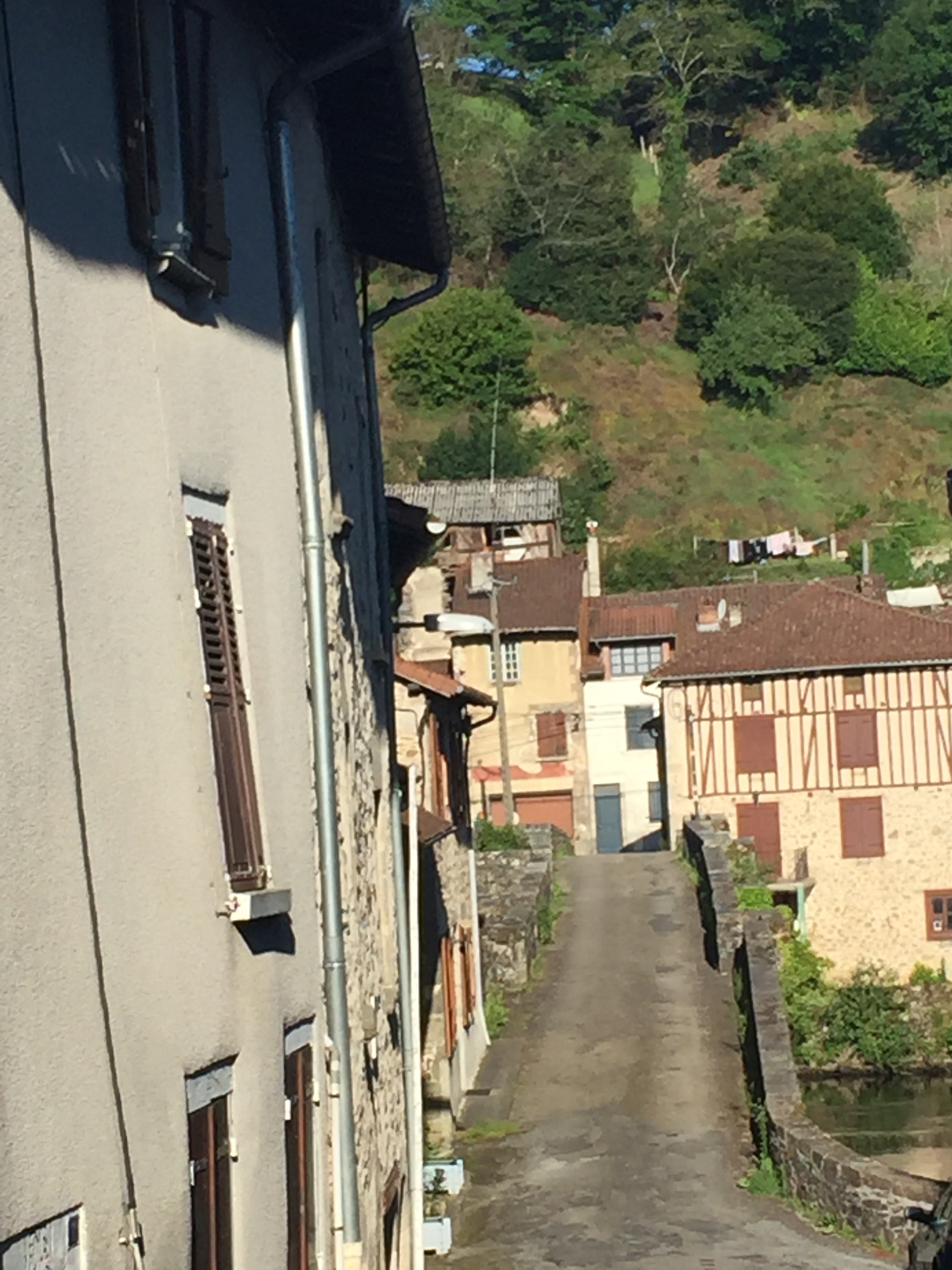 Vanochtend vroeg vertrokken, even langs de bakker, verlaat ik de middeleeuwse stad via een heel oud bruggetje, de Pont de Noblat.