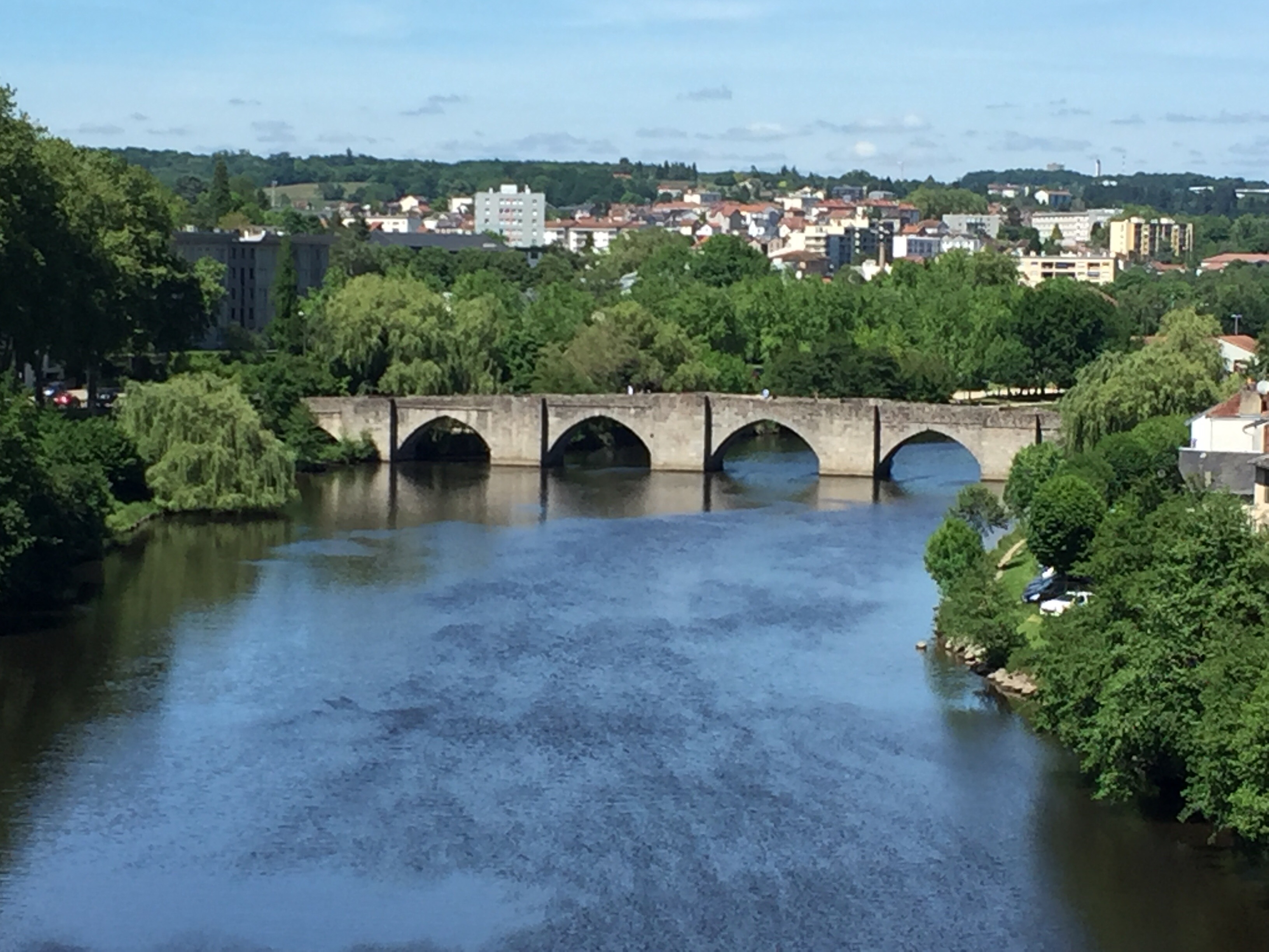 Dan nader ik zo langzamerhand de grote stad van Limoges. Ik volg kilometerslange asfaltwegen door saaie buitenwijken, langs bedrijfsterreinen, over bruggen en viaducten, langs rotondes en vangrails of over de berm waar het verkeer langs raast. Voetgangers en ook fietsers zijn niet zo welkom in dit land, overal ontbreekt een fatsoenlijke stoep of een zichtbaar fietspad.