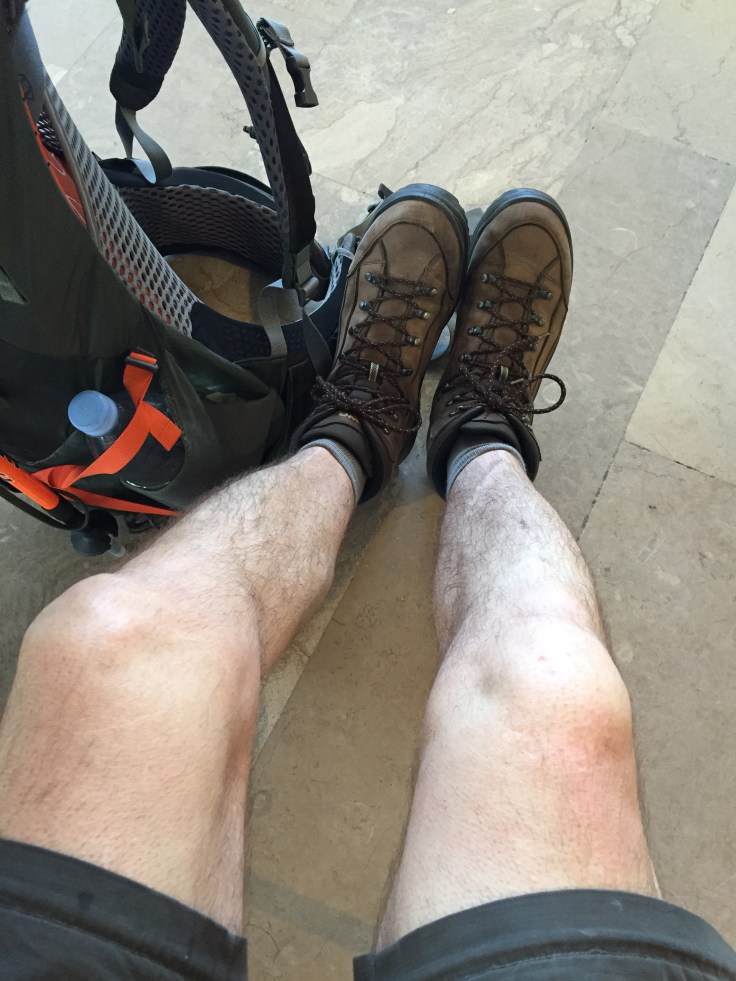 Het is prachtig weer en tegen mijn gewoonte in, ga ik verder in enkel t-shirt en afgeritste korte broek. Ja, dat is wel schrikken, natuurlijk. Hier de foto van ‘before’. Over een maand hoop ik de gebruinde foto van ‘after’ te kunnen laten zien.