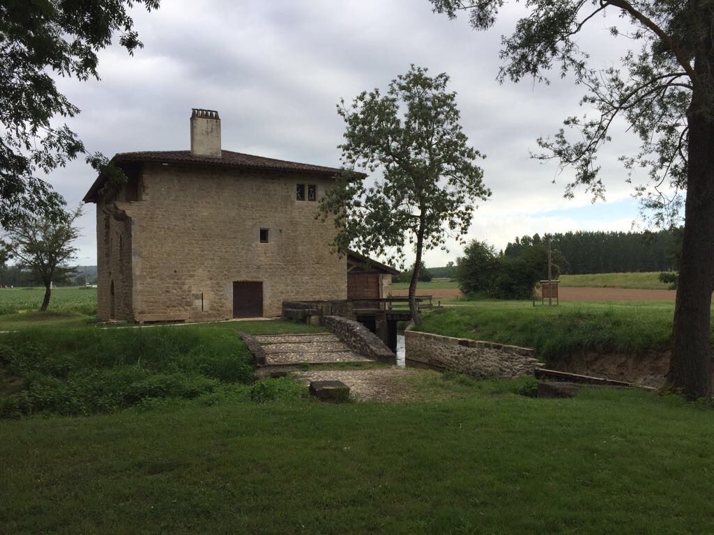 Als ik wil vertrekken, zie ik nergens een sleutel. Ik kan er niet uit, dus ik bel de molenares maar. Ik wordt overladen met verontschuldigingen, want ze had de sleutel weer meegenomen. Vol wandelenergie stap ik naar buiten, midden in het riviergebied van de Garonne. Zo vlak als een spiegel, veel maïsteelt, fruitbomen, bossen van populieren. De molenares verbouwt zelfs kiwi (‘die hebben veel water nodig’). Dan kom ik langs een aantal waterwerken en kanaaltjes.