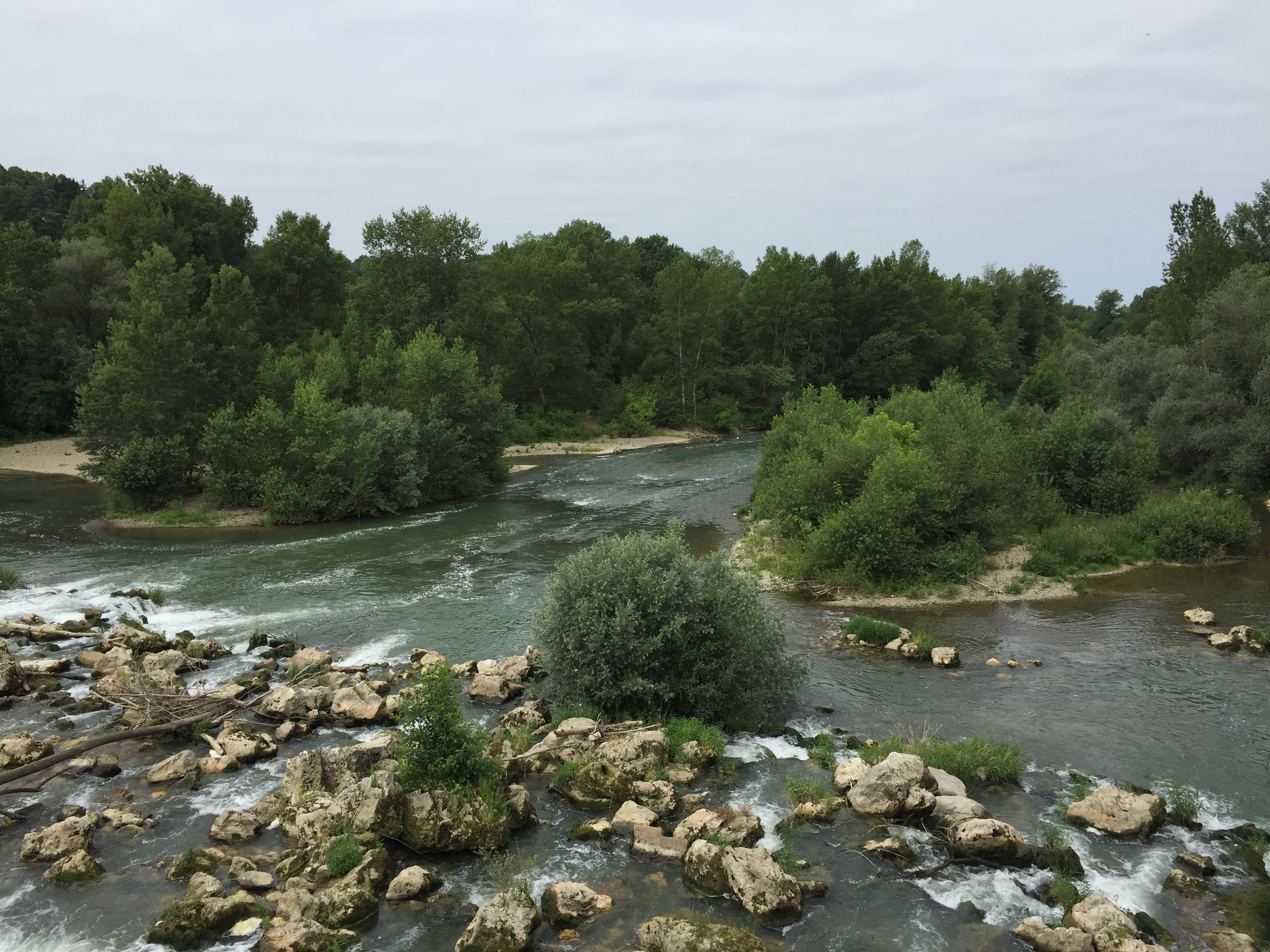 Nadat ik een brug over een grote stroomversnelling ben overgestoken, gaat de asfaltweg in haarspeldbochten omhoog naar het dorp Saint-Sever.