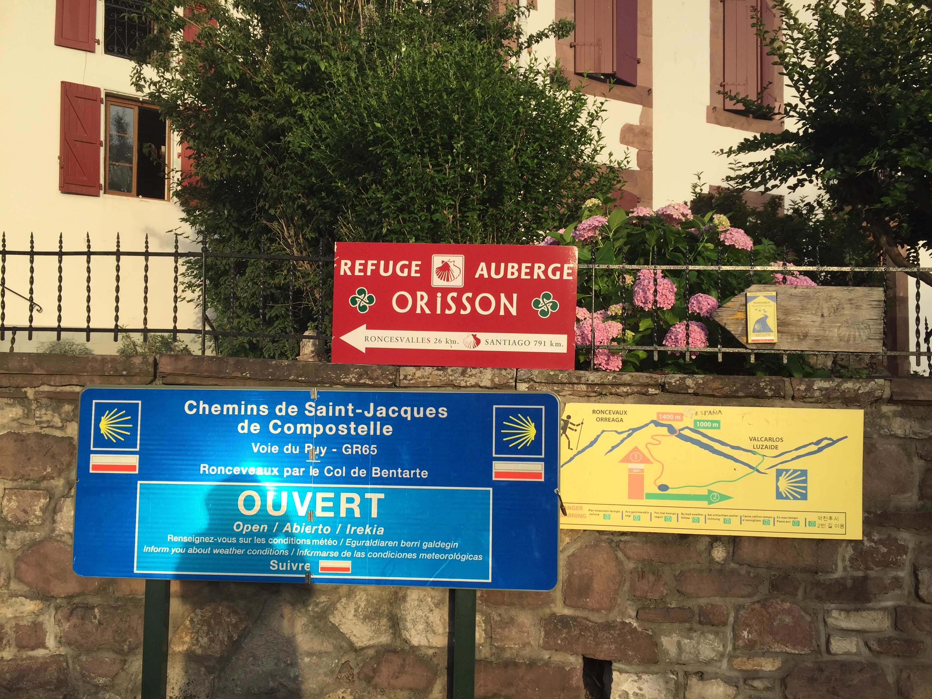 Na ongeveer twee uur stijgen over asfalt, slingerend in lange haarspeldbochten, kom ik aan bij de herberg Orisson.