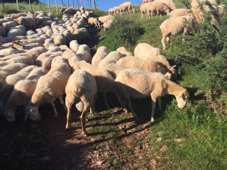 Op zo’n paadje ontmoet ik een klein vrouwtje uit Taiwan. Als ik haar Lady Taiwan noem, straalt ze. Maar dan krijgen we te maken met een ‘problème de passage’: het paadje waar wij – en alle pelgrims na ons – langs moeten is geblokkeerd door een kudde schapen. Verwachtingsvol kijkt de lady mij aan. Stoer steek ik mijn stok in de lucht en roep in zuiver Brabants: ‘Aan de kant jullie, Lady Taiwan en ik moeten erdoor’. Enigszins aarzelend, maar uiteindelijk wel overtuigd gaan de beesten inderdaad een stapje naar links of rechts zodat we er door kunnen. De lady verbergt zich achter mijn knokige schouders en kijkt me tenslotte bewonderend aan alsof ik een draak heb verslagen.