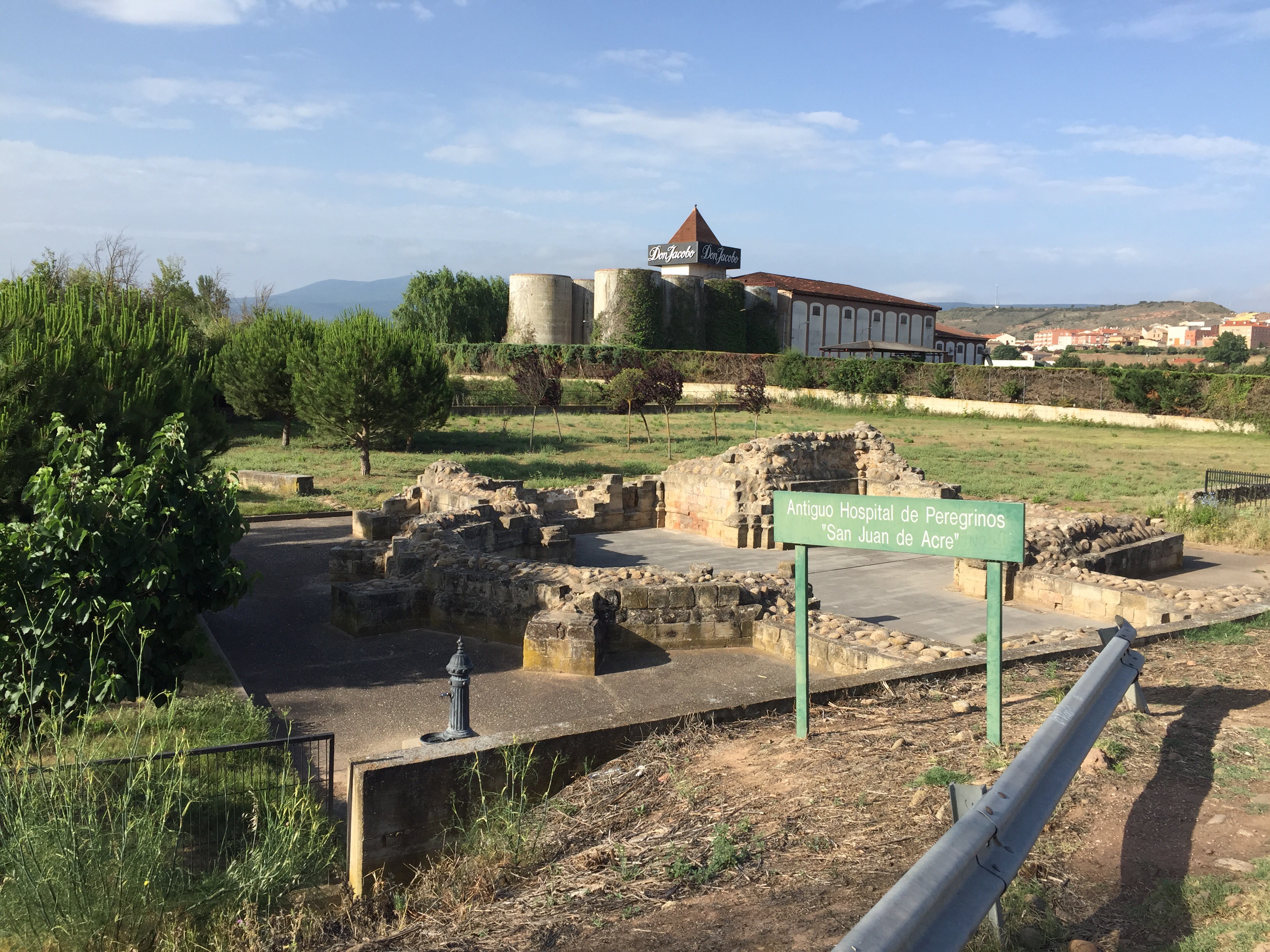 Ruïne hospitaal voor pelgrims met op de achtergrond Don Jacobo