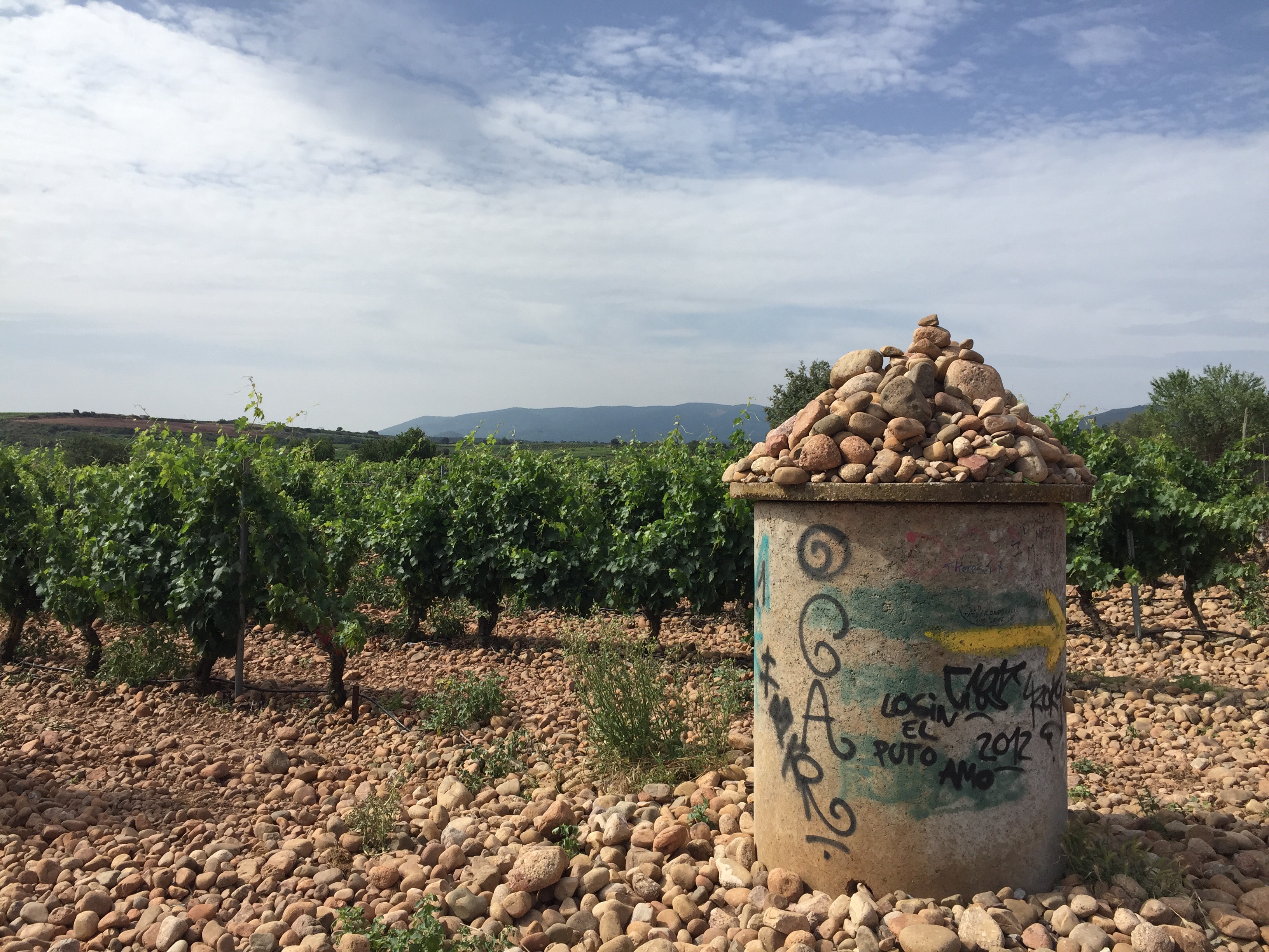 Wijngaard met een bodem van grote rolstenen en een pelgrimspyramide