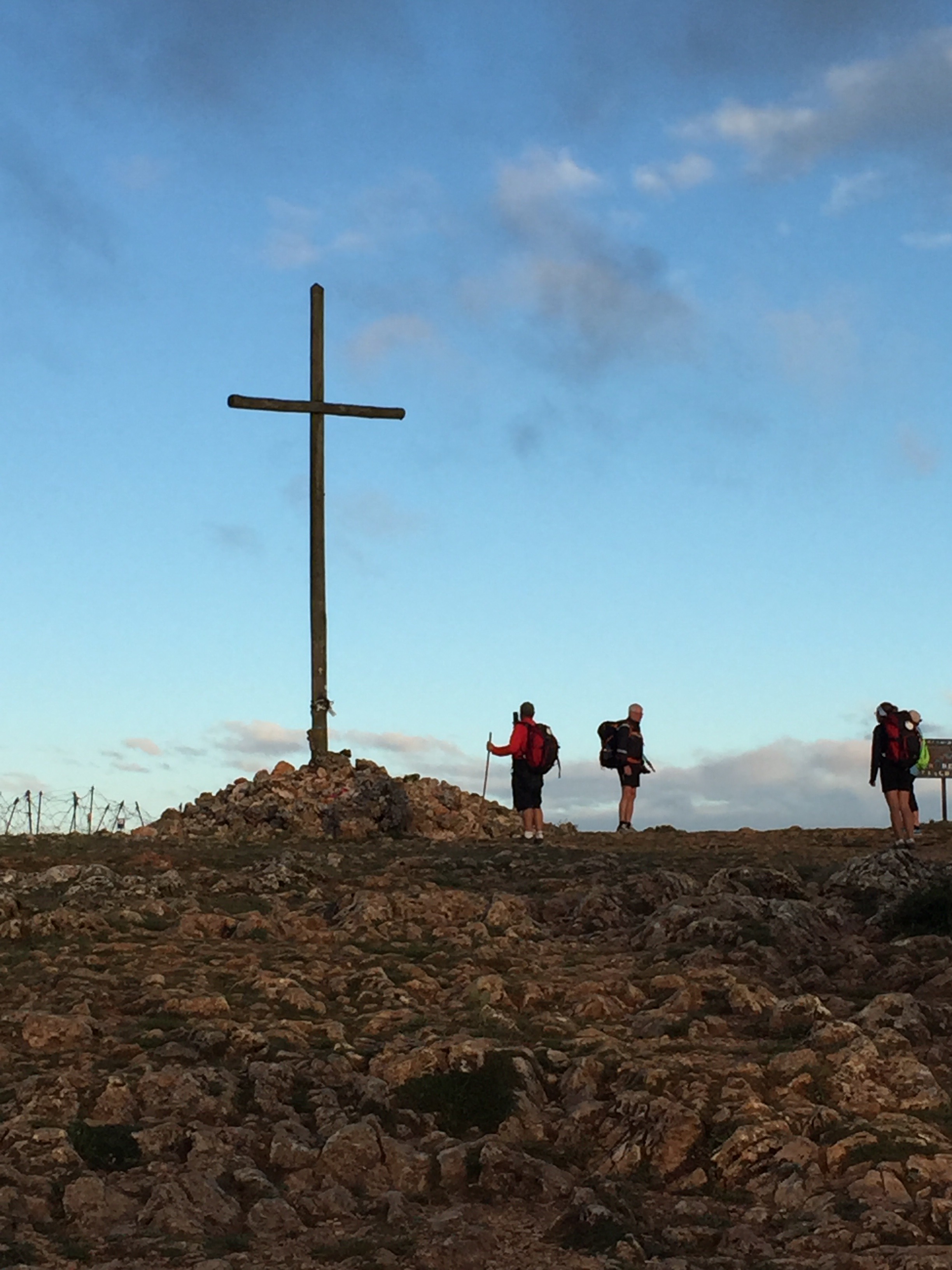Dan volgt een 10 km lange wandeling naar beneden. In een café waar alle pelgrims stoppen voor een bak koffie of meer, ontmoet ik Alice die op 1 april vanuit Spierdijk in Noord-Holland is vertrokken. Waarschijnlijk heeft ze steeds één of twee dagen achter me gelopen. In het café en ook later onderweg naar Burgos zijn we intensief aan het praten. Het gaat vanzelf en zijn allebei erg geïnteresseerd in elkaars verhaal. Het lijkt wel of je op zo’n pelgrimstocht je luisteroren vanzelf op scherp hebt staan. Ze heeft het zwaar te verduren gehad in haar leven, veel tegenslagen door omstandigheden en mensen om haar heen. Ook domme pech. Zij heeft de kracht gevonden om op te krabbelen in de kerk waaraan ze nu verbonden is. Ze put daar veel kracht uit. Ze heeft dan ook duidelijk een religieuze motivatie voor deze tocht naar Santiago.