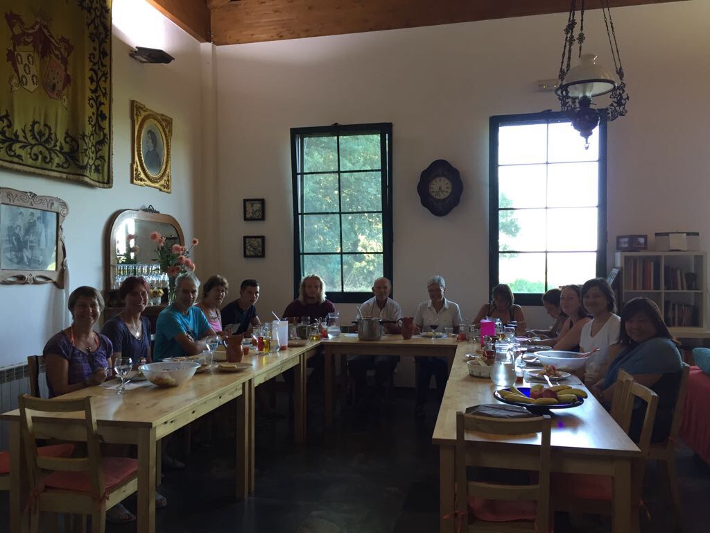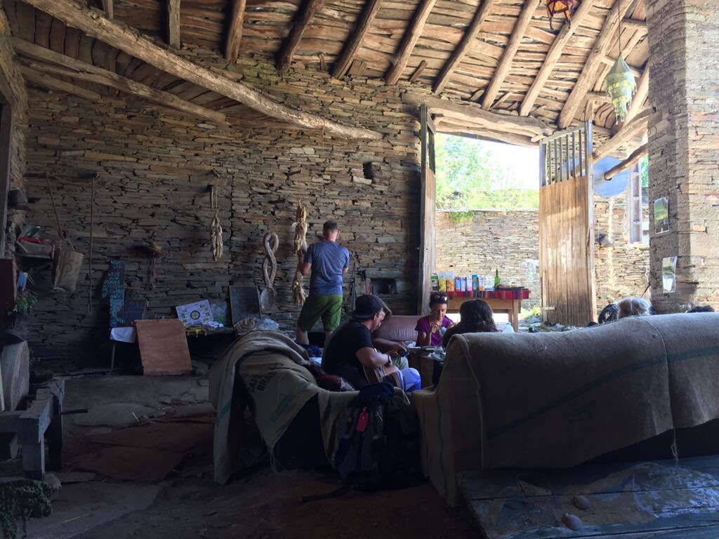 Het is een lange wandeling geworden en we besluiten om in het zicht van de stad Sarria te stoppen bij een zeer aantrekkelijke albergue. Vanaf de weg zien we pelgrims in de tuin liggen voor een mooi laag gebouw, alles straalt rust uit. Een goed alternatief voor die drukke stad. We schrijven ons in en komen terecht op een kamer vol stapelbedden met acht andere pelgrims. Ik ontmoet weer de Nederlandse Alice die ik in León voor het laatst gezien had. Heel gezellige sfeer. ’s Avonds met alle pelgrims aan de eettafel: Duitsers, Nederlanders, Fransen, Taiwanezen en een Engelse. Leuke afsluiting van deze dag.