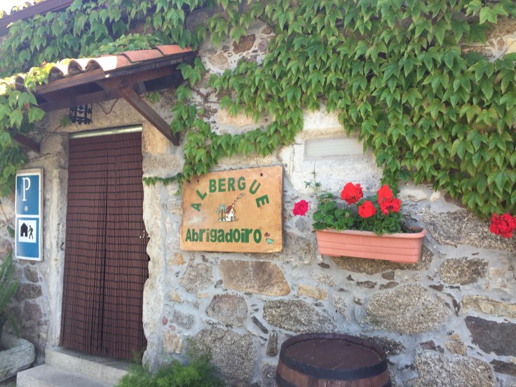 De herberg was onder het hotel en had een eigen ingang. Als wij, pelgrims, binnendoor naar de bar van het hotel gingen, werden we intimiderend behandeld door de medewerkers. Pelgrims willen graag in de hotelbar/restaurant zitten. Voor de gezelligheid en voor wifi. Maar het zijn geen grote gebruikers. Dus ziet het personeel ze liever niet verschijnen in hun sjofele kledij, sandalen, afritsbroeken en ongeschoren gezicht. De helft van de slaapplaatsen was bezet, pelgrims die na mij aan de bar om een slaapplaats vroegen, werden pas laat behandeld en de meesten gingen er weer vandoor. Het is vol, kregen ze te horen. Blijkbaar wil het hotel wel pronken met de pelgrims en de naam dragen van hotel-albergue. Maar echt leuk vinden ze het niet.