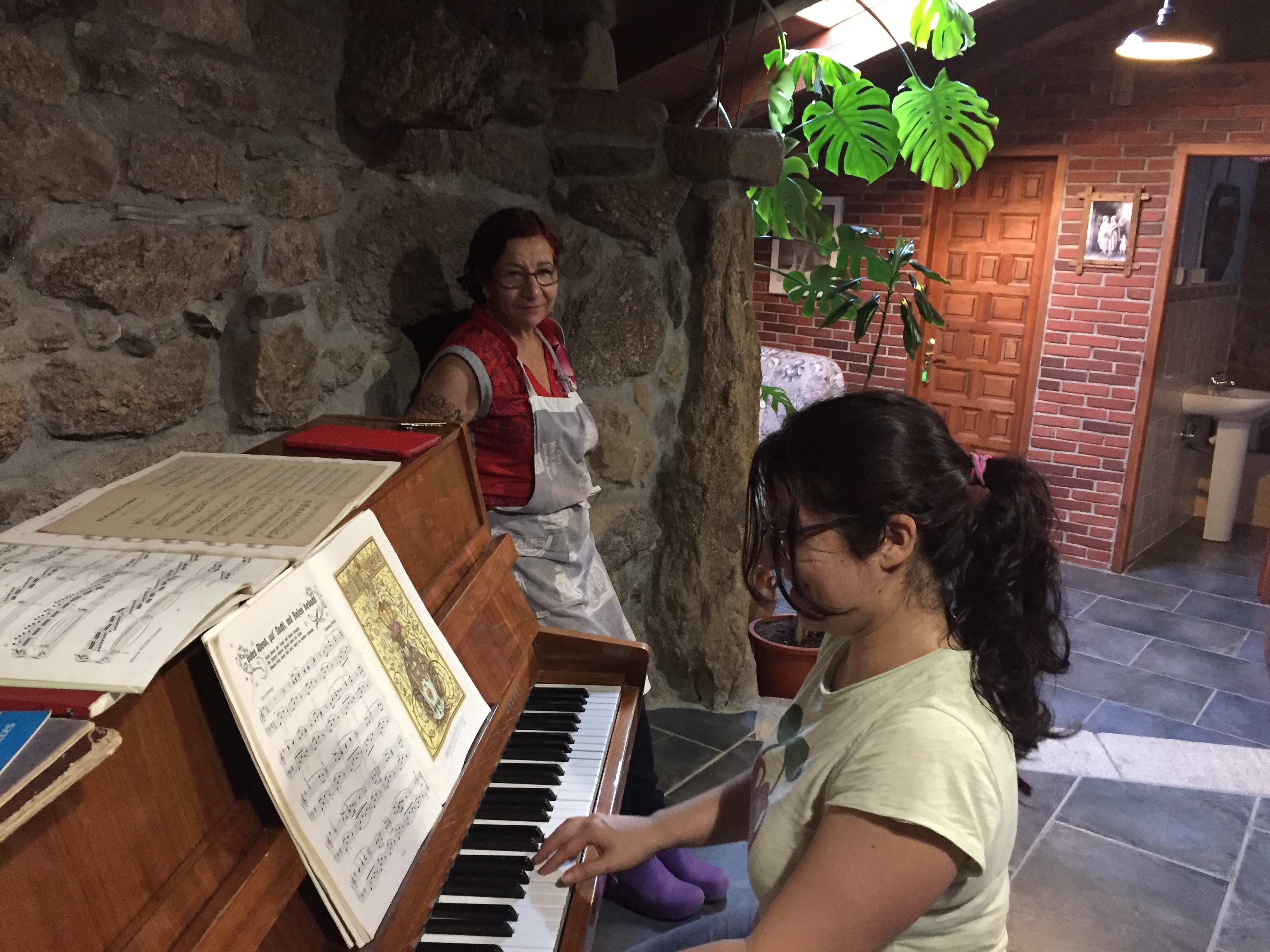 Leuk knus ingericht, kleine slaapruimte met maar drie stapelbedden. Wij worden de enige slapers. De eigenares vertelt dat het een slecht jaar is met veel minder pelgrims dan vorig (heilig) jaar. De dochter van de eigenares speelt prachtig piano voor mij.