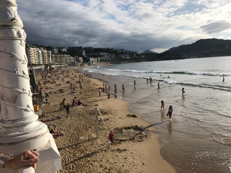 Flink moe, mijn spieren voel ik goed zitten, maar geen blaren. San Sebastián is één van de mooiste badplaatsen die ik gezien heb. Twee grote baaien met strand tot aan de flaneerboulevard, waar om 8 uur ’s avonds mensen nog zwemmen in zee. Copacabana.