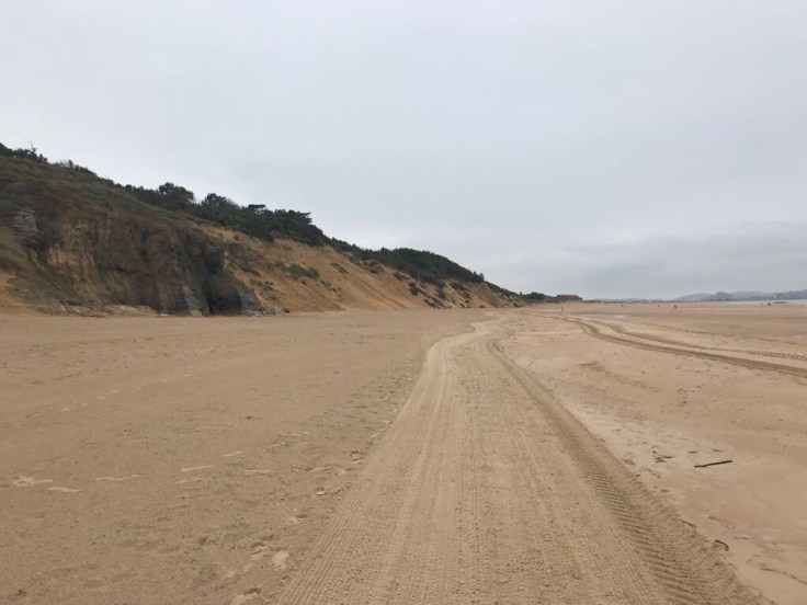 En dan eindelijk – het is nog steeds zwaarbewolkt – kom ik uit op het strand, vlakbij een helikopterlandingsplaats. Er volgt een lange wandeling over het strand, dat tot mijn verbazing is uitgestorven. Ok, het is bewolkt, maar verder is de temperatuur heel lekker, ook van het water. Op het zogenaamde surfstrand is het iets drukker, maar de pelgrimgangers zie je toch eenzaam door het zand stappen.