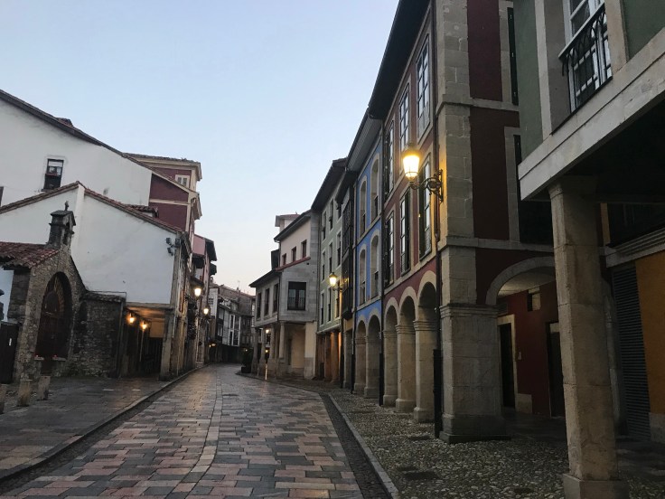 Middeleeuwse straatjes van Avilés vroeg in de morgen