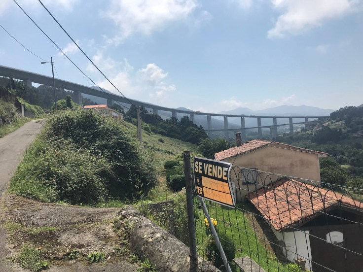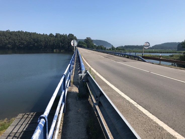 Bij La Magdalena moet ik een lange brug over; best een beetje eng. Een smalle doorgang tussen een lullig hekje links naar de onderstromende rivier en een pijpleiding rechts als obstakel naar de autoweg.