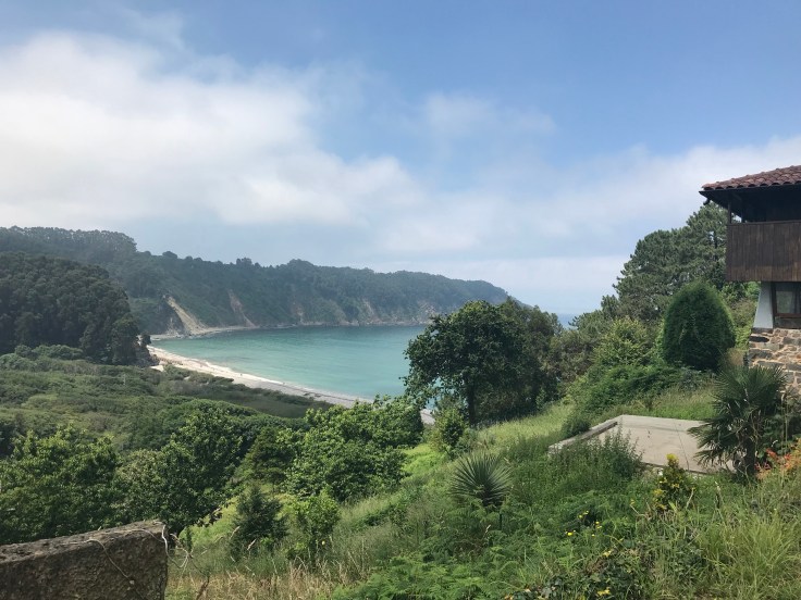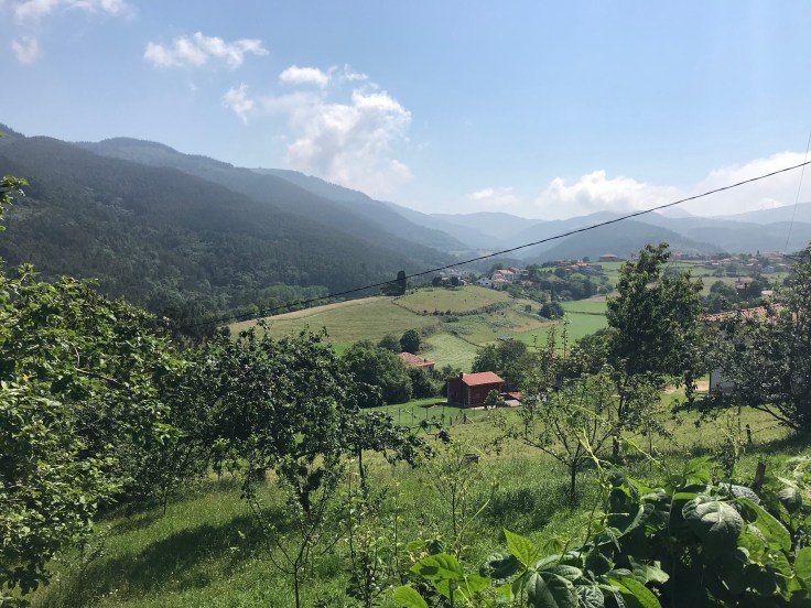 Vanaf strandniveau eerst onder de autowegen door en dan langzaam stijgen. Als ik even pauzeer, zie ik Ricardo de helling opkomen. Hij heeft het zwaar, maar hij wil net zo ver als ik. En de Fransman had gezegd dat het nog maar een uur lopen was. Nou, het zouden er twee worden. Met links het dal en rechts een dicht bos blijven we op dezelfde hoogte lopen door een aantal dorpen. Wat is het mooi hier!