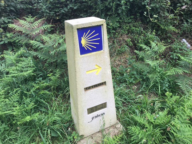 Sinds ik in Galicië wandel (nadat ik de grote brug ben overgestoken in Ribadeo) zijn de aanduidingen van de weg naar Santiago overduidelijk en overvloedig aanwezig.