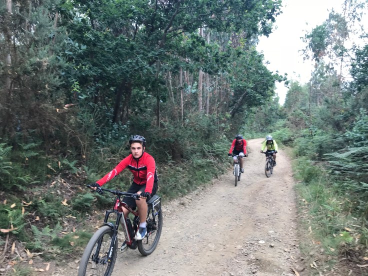 Zo tegen het middaguur, na zo’n 15 km kom ik door O Pedrouza. Bijna alle pelgrims stoppen daar om morgen naar Santiago te gaan. Ik voel me sterk, het regent nog steeds niet en ga door. Opvallend is dat het daarna druk wordt met fietsers. Wel leuk, maar soms is het ook gevaarlijk: ze bellen niet, dus ik hoor ze niet aankomen. En vooral bergafwaarts gaan ze weleens gevaarlijk snel. Ze hebben al een flink stuk afgelegd vandaag en gaan over een uurtje aankomen in Santiago.