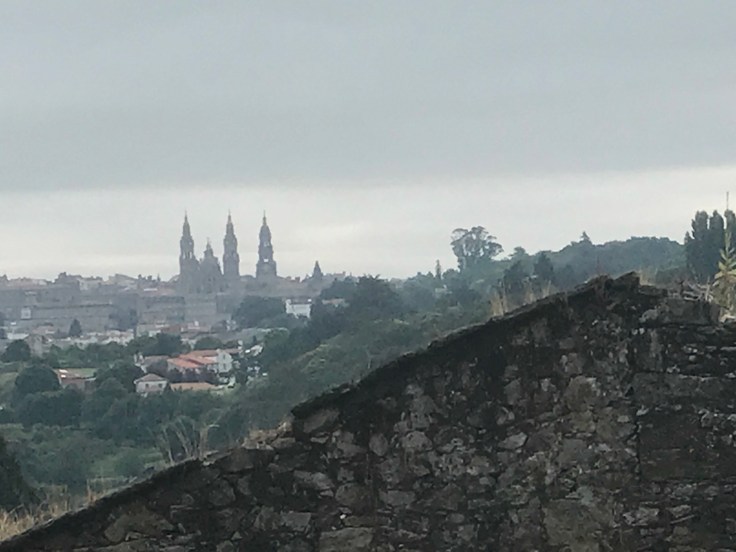 Terugblik op Santiago met de enorme kathedraal