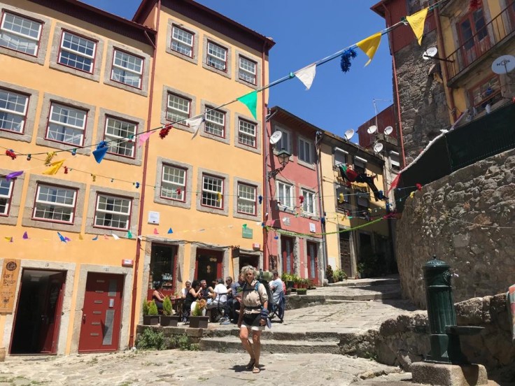 Met een mooie zon boven de stad komen we terecht in een mooie stad die bruist van energie en in het oude centrum wordt overlopen met toeristen. Lange rij voor de kathedraal; we gaan eerst maar eens langs bij de Officia de Turismo voor wat info over stad en de lokatie van onze bestemming, de slaapplaats bij de diaconessen. Porto ligt op lange en soms steile hellingen en dat maakt de laatste kilometer van stijgen en dalen best zwaar.