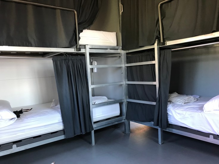 We hebben niet zo goed geslapen. De herbergslaapzaal was een benauwde ruimte, met weinig luchtventilatie. Voor 6 euro kun je natuurlijk niet veel verwachten, maar er stonden drie rijen stapelbedden, in de lengte tegen elkaar met smalle ruimtes tussen de rijen voor de rugzakken of om te gaan staan. Maar goed, we doen het er mee.