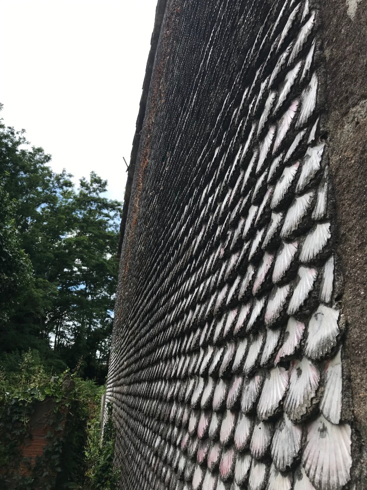 We reserveren op ca. 8 km verder een slaapplaats in een herberg met eetgelegenheid in Cruces. Er volgt eerst nog een prachtige wandeling met veel bijzondere bloemen, een bezoek aan een kerk waar we een stempel in ons pelgrimspaspoort zetten. Een huis waarvan de zijmuur volledig is bezet met Jacobsschelpen.