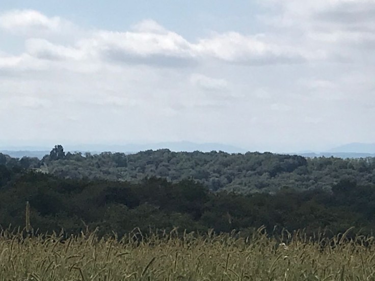 In de verte zie ik de Pyreneeën liggen. Het begint toch zwaar te worden, terwijl de hellingen best meevallen. Misschien is het de vochtige lucht en de felle zon die me vermoeien. Anderen hebben er ook last van.