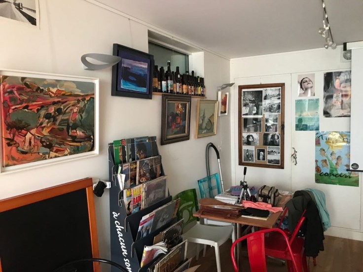 Het is zondag en we willen even in een kerkje naar binnen kijken, maar de mis lijkt al aan de gang. Dus gaan we maar door en komen aan het eind van een lange weg terecht bij een eco-café. Wat dat is weet ik nu nog steeds niet, maar het wordt gerund door een rebelse hippie in een kort schots rokje. Het café is gezellig van binnen, maar dient ook als opslagruimte: het biedt plaats aan tijdschriften, een lp-verzameling en een zeer gevarieerde verzameling van schilderijen in alle stijlen.