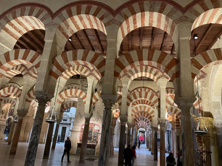 In Córdoba bezoek ik de grote moskee: de Mezquita. Ooit was dit de grootste van Europa. Veel Moorse bouwwerken zijn aan het einde van de Moorse inval in Spanje (die in totaal van 711 tot 1492 duurde) omgebouwd en ingericht volgens de christelijke opvattingen. Zo ook deze moskee.