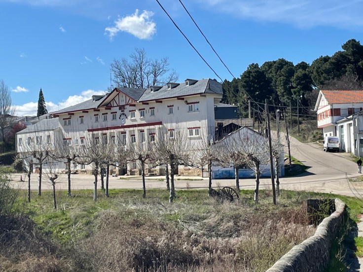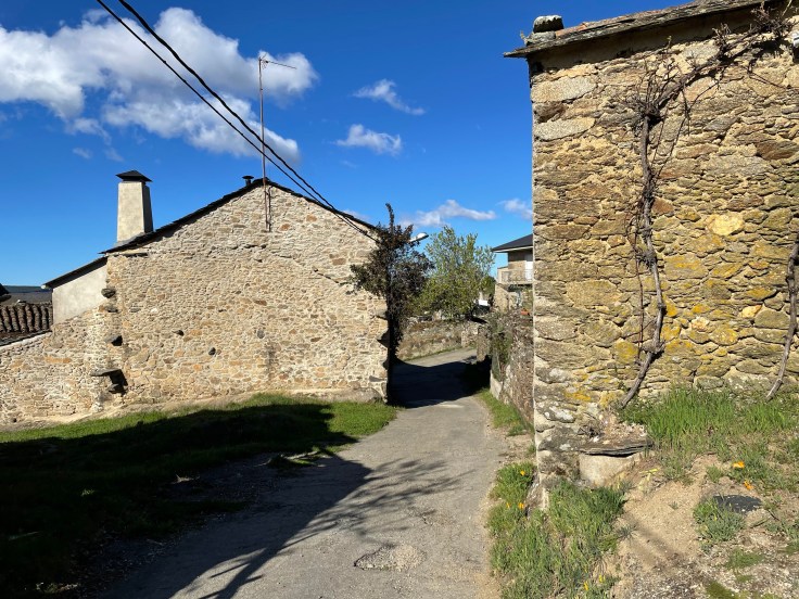 Het laatste deel van de trip slingert met de autoweg mee naar beneden, door een klein uitgestorven dorpje, en komt uit op het asfalt van het historische stadje Puebla de Sanabria. Als ik in het Centro Historico kom, ga ik eerst uitgebreid eten en drinken. Mijn iPhone batterij is leeg (veel radio geluisterd) en de powerbank had ik niet meer opgeladen. Dus laat ik dat opladen even hier doen. Nu kan ik ook weer foto’s maken en ook de weg vinden naar mijn goedkope slaapplaats: warm en zonder snurkers aan de Camino route even buiten het stadje. Vooral het lang en heet douchen doet me goed. Nog steeds goeie voeten.