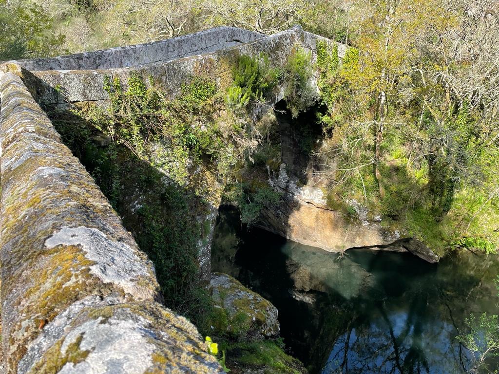 Ik wil eerst de 15 km gelopen hebben voordat ik ga pauzeren of lunchen. Maar ik merk dat de hitte me te pakken krijgt tijdens mijn forse tempo. Ik pauzeer eerder, drink veel water en ga even liggen in een bos. Niet ver van een Romeinse brug.