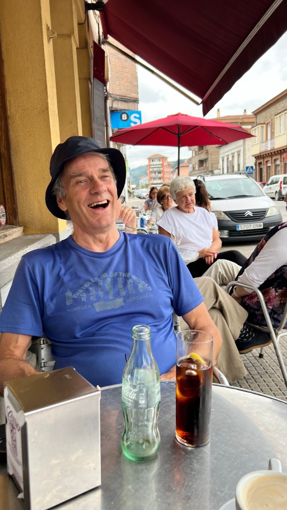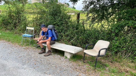 Liz is van oorsprong Russische, woont al lang in Duitsland, werkt af en toe in Zwitserland om geld te verdienen en heeft tijdens de Camino Primitivo ontdekt wat echt belangrijk is in het leven. Door al die crises van klimaatverandering, pandemie en oorlog wil ze niet langer uitstellen om haar dromen achterna te gaan. Ze zit nu hier als vrijwilliger bij een hippie echtpaar met een zoontje van drie dat af en toe in zijn blootje langs komt rennen en wil later het bekende pad gaan volgen als yogalerares, op reis gaan naar India en spiritueel groeien. We betalen zoveel als wij vinden dat het waard is en gaan weer verder. Leuke onderbreking, best weer lang zitten koffie leuten.