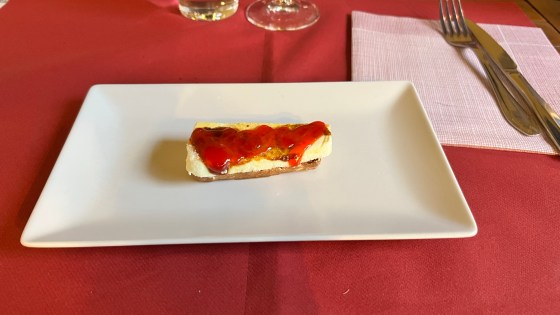 Heerlijk diner met vier gangen met bijzondere hapjes en een fles overheerlijke rode wijn. Per persoon slechts 14€. In ons land betaal je dat alleen al voor de wijn.