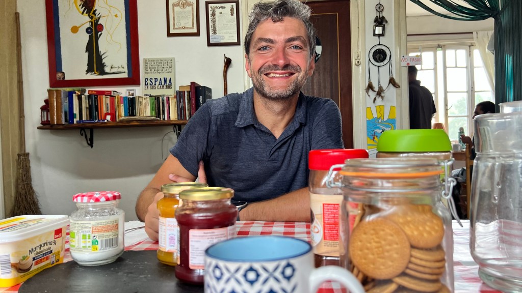 Het voelt als een voorrecht om voor 15€ pppn te overnachten in een ruime tweepersoonskamer, brede bedden, douche op de gang en dan mag je ook nog in de naastgelegen keuken ontbijten waar alles is aan brood, boter en jams, koffie en thee. Goed geslapen en goed gegeten gaan we op stap.