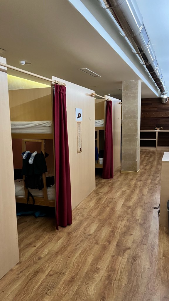 Als we aankomen bij onze herberg horen we in de verte de donder, het gaat onweren en regenen. We gaan eten en slapen in het Palacia, chique hotel waar onderin speciaal voor de pelgrims stapelbedden met sanitair zijn gemaakt.