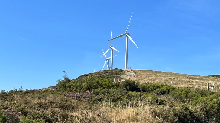 Even later stijgen we 175m en komen zo op het hoogste niveau van meer dan 1100m, waar grote witte windmolens staan die gedurende de hele dag te zien blijven.