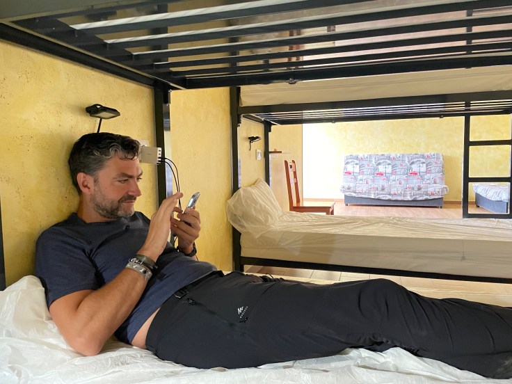 Erik en ik hebben een mooie herberg gekozen, mooie slaapplaatsen, schoon sanitair en ik kan de was laten doen, incl. drogen.