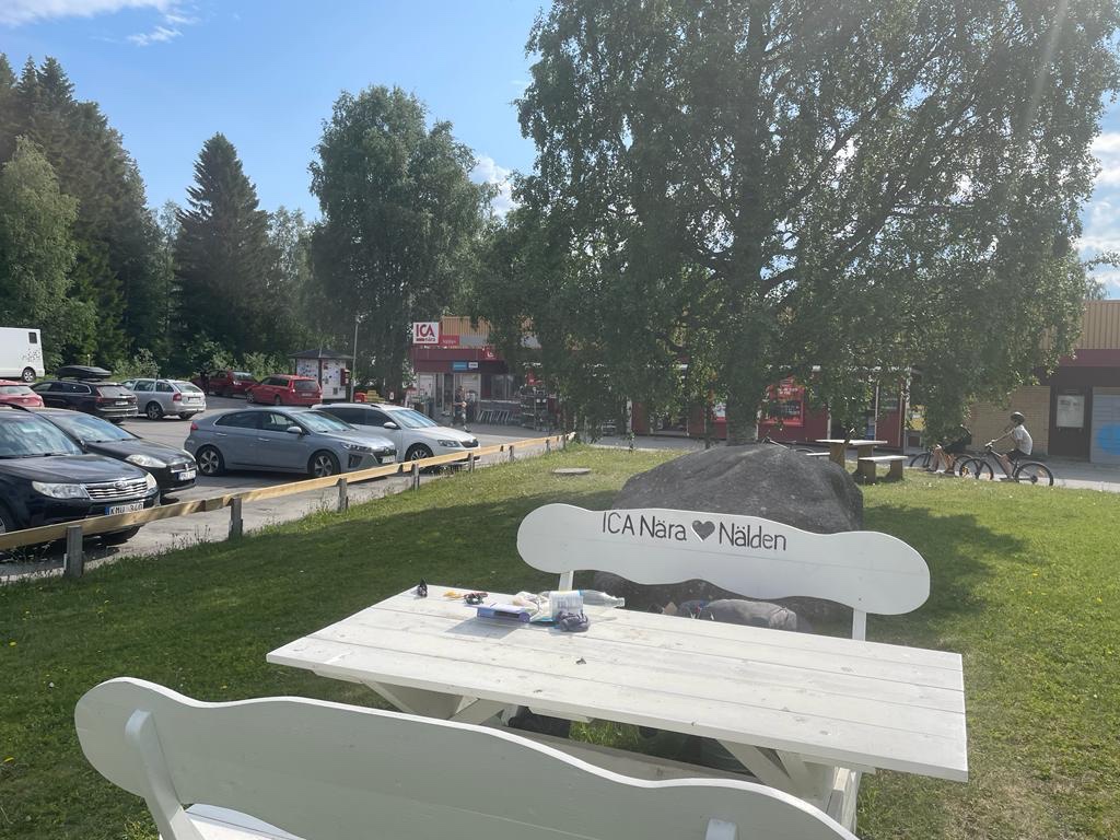De laatste kilometers langs open gebied zijn zwaar aan het worden. Mijn drinkwater is op en ik moet snel naar de ICA-supermarkt in Nälden (op 4 km voor bestemming Vaplan) om drank en voedsel in te slaan.
