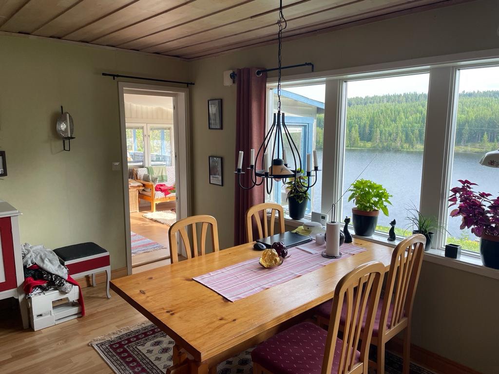 Nog wel 4 km lopen over asfalt naar haar huis. Een mooie grote blokhut eigenlijk aan de rand van een meer, geen strandje maar langs een vrij steile helling kom je in de achtertuin terecht bij het water.
