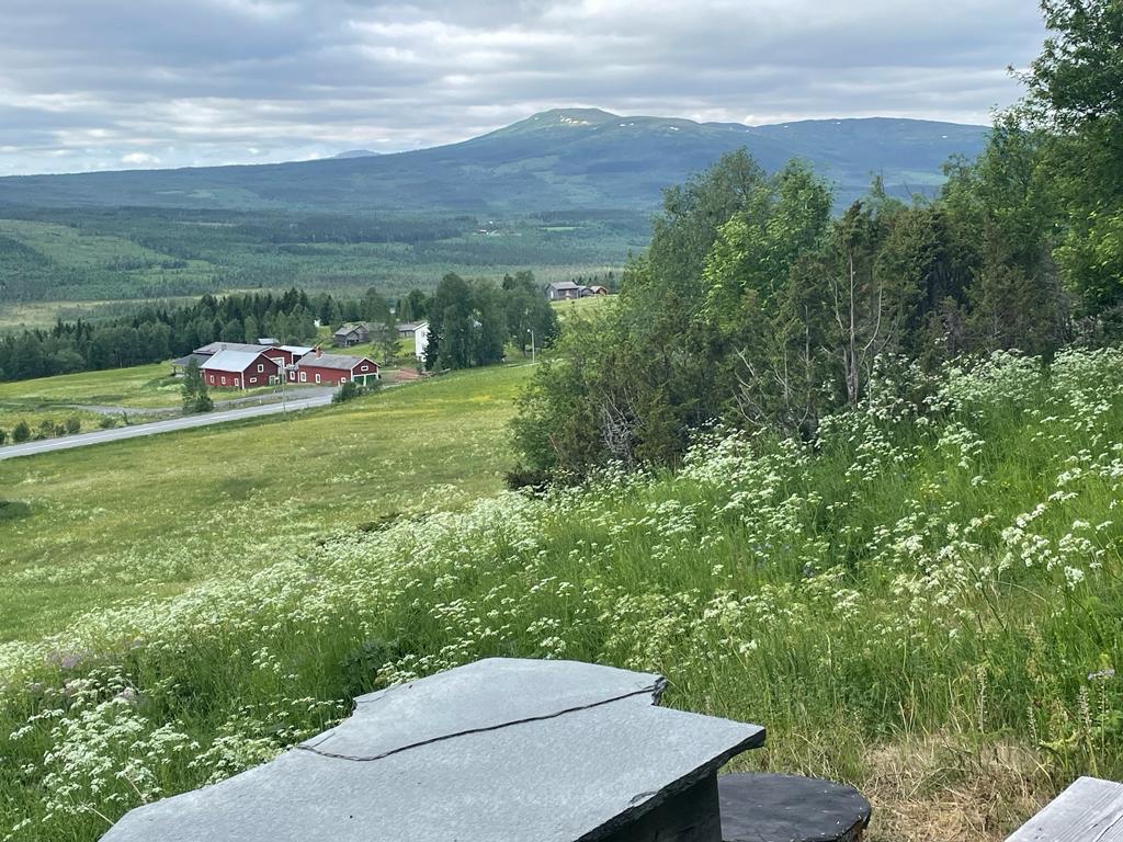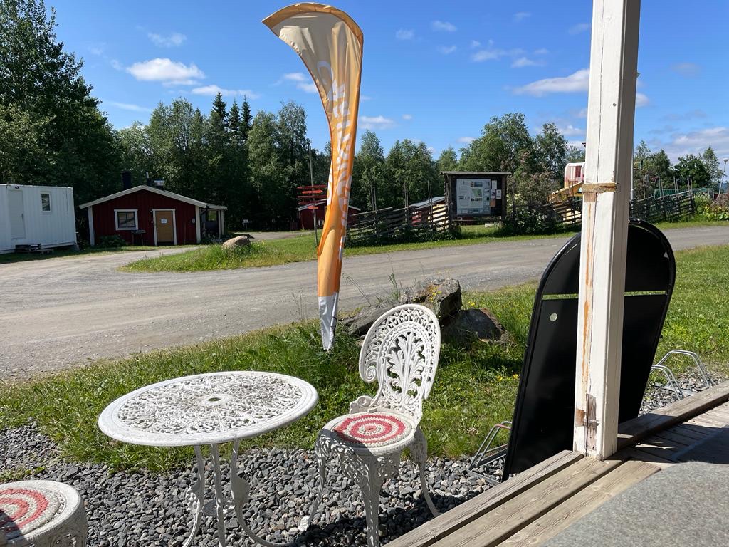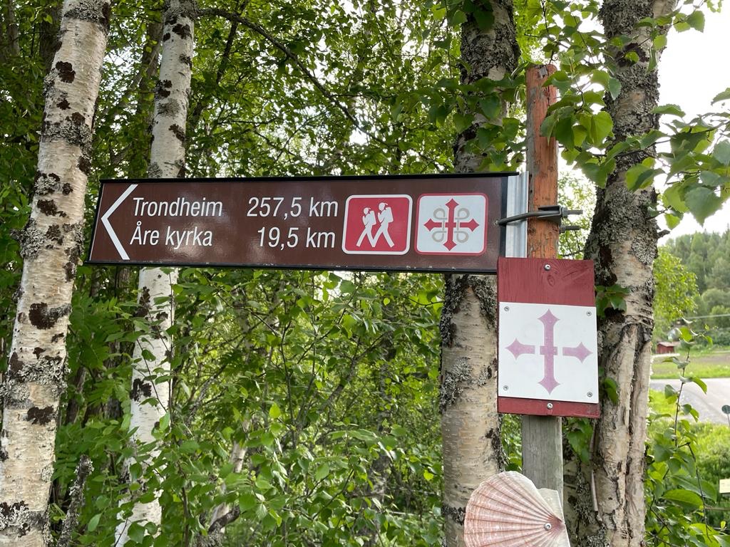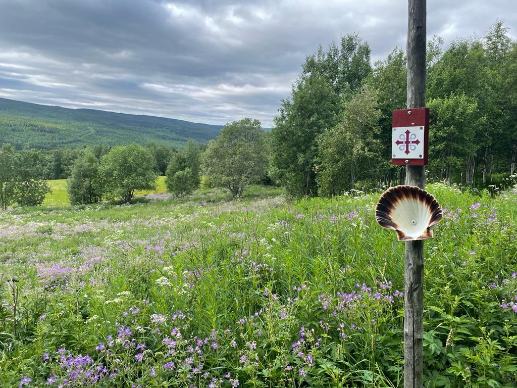 Op 7 km van Åre ligt een grote camping, waar ook pelgrims kunnen slapen. Ik stap even de receptie binnen voor een colaatje en ga lekker in de zon op het terrasje zitten, even rust. En genieten van mijn lunchpakketje.