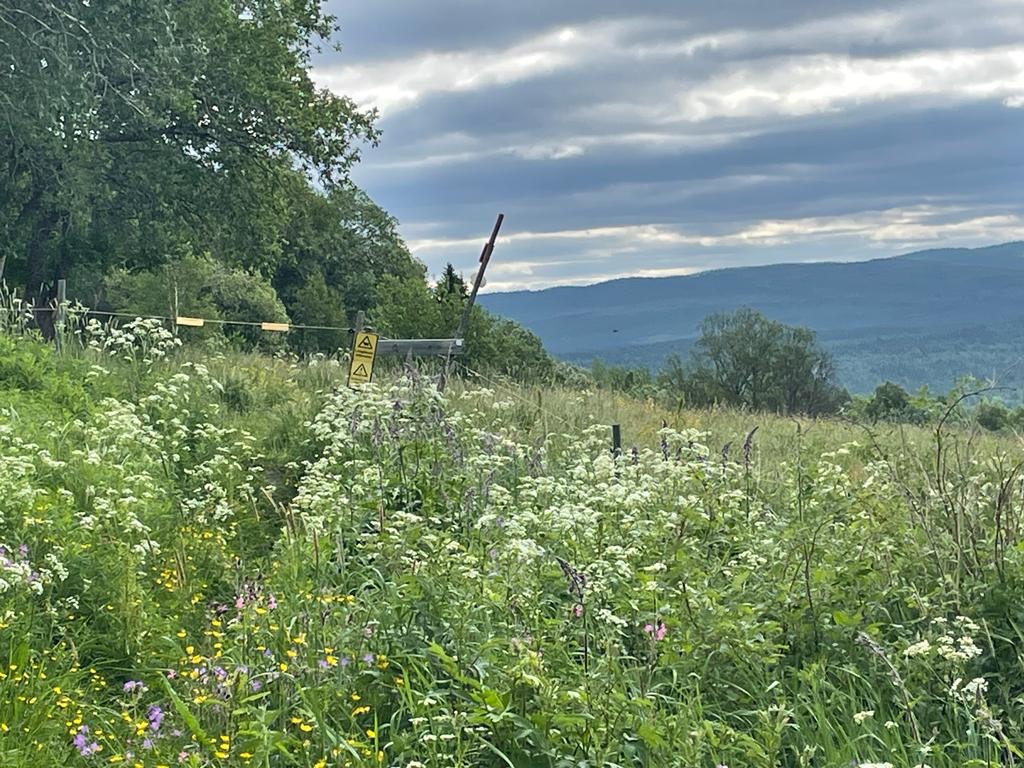 Daarna loop ik door geurende velden van gras en bloeiende kruiden: fluitenkruid, klaver, boterbloemen, paardenbloemen, vrouwenmantel, wilgenroosje, klein beetje braam, grasklokje. En nog wel meer. Maar opvallend…geen brandnetels.