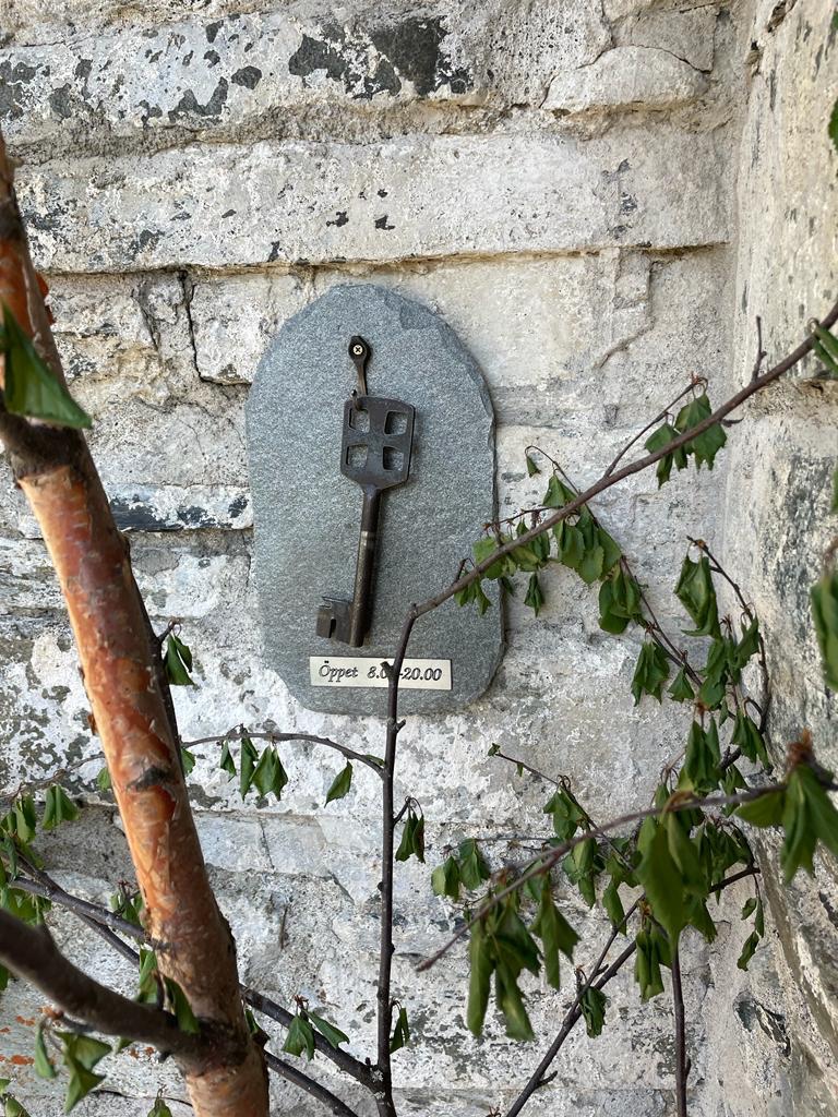 Het stenen kerkgebouwtje is klein en heeft een klein deurtje aan de zijkant. Deze is op slot als ik aankom, maar links aan de muur hangt een grote ijzeren sleutel met daarbij aangegeven open 8 – 20 uur.