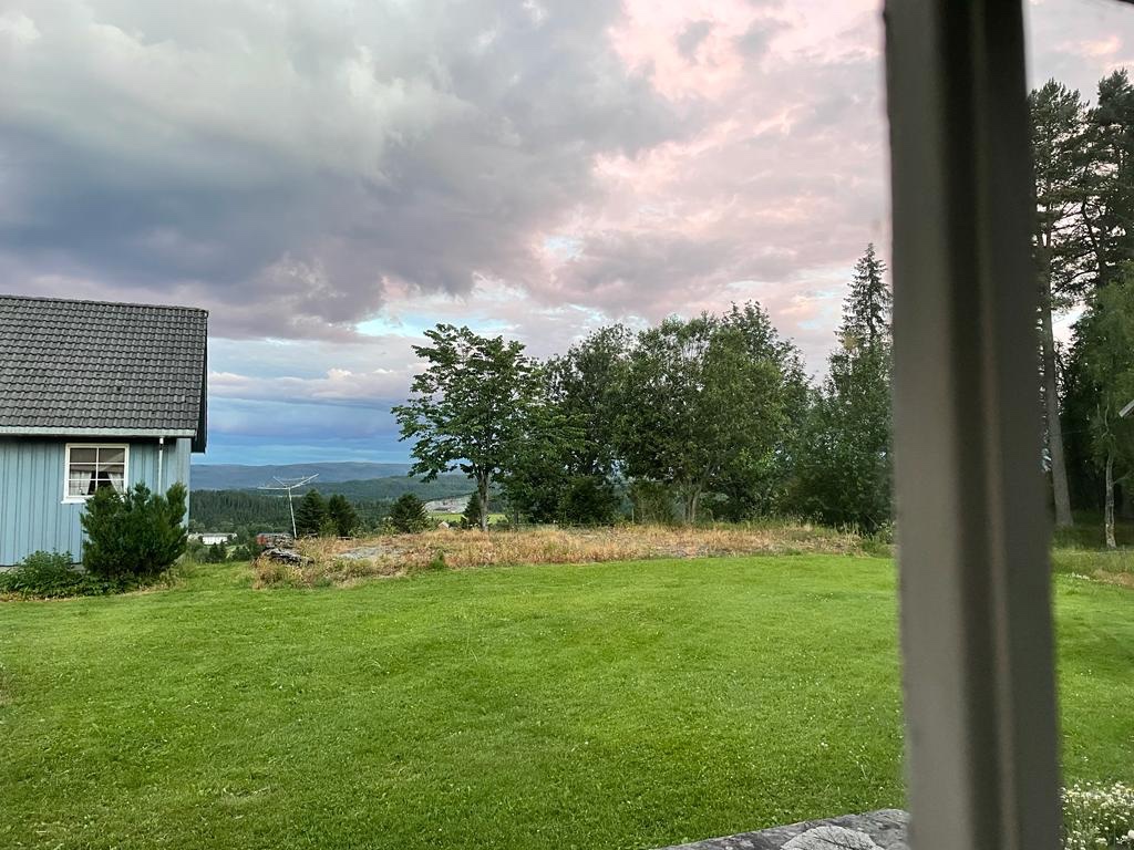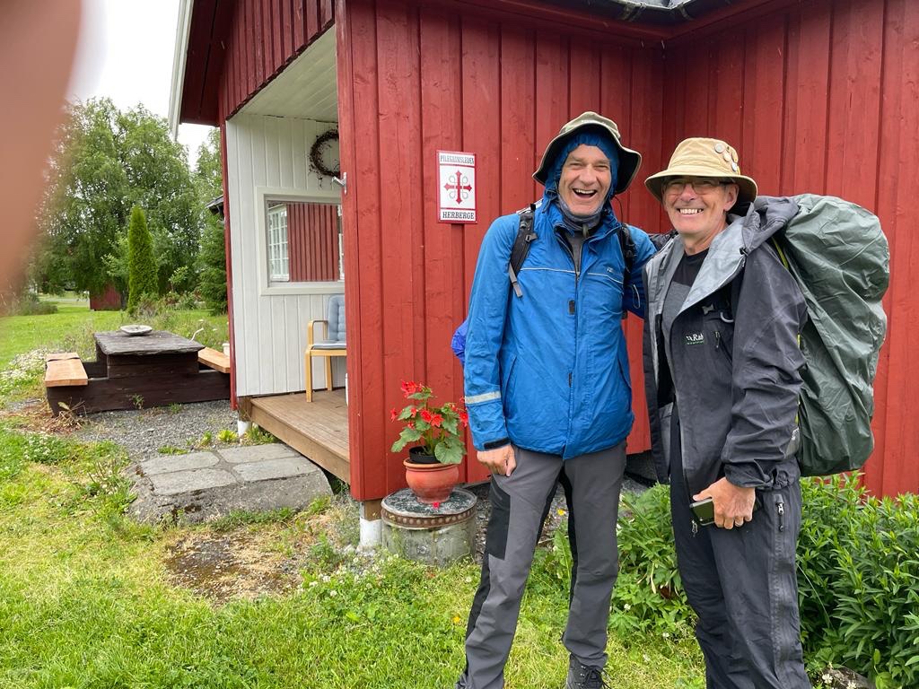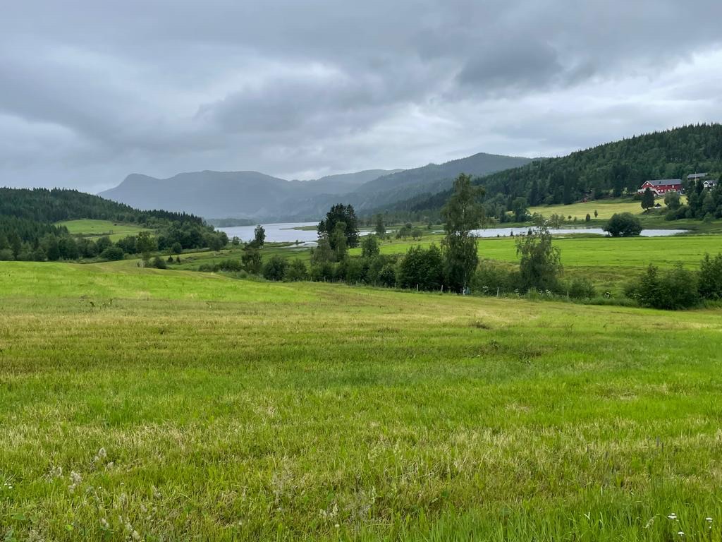Goed geslapen en ontbeten. Het regent licht als we afscheid nemen van Ola, de boer en herbergier. Donkere luchten buiten.